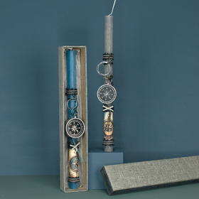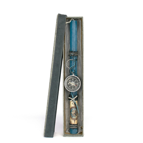 Γέραλης Χειροποίητη Λαμπάδα με Μπρελόκ Πυξίδα σε Υφασμάτινο Κουτί Μπλε κωδικός 24086B
