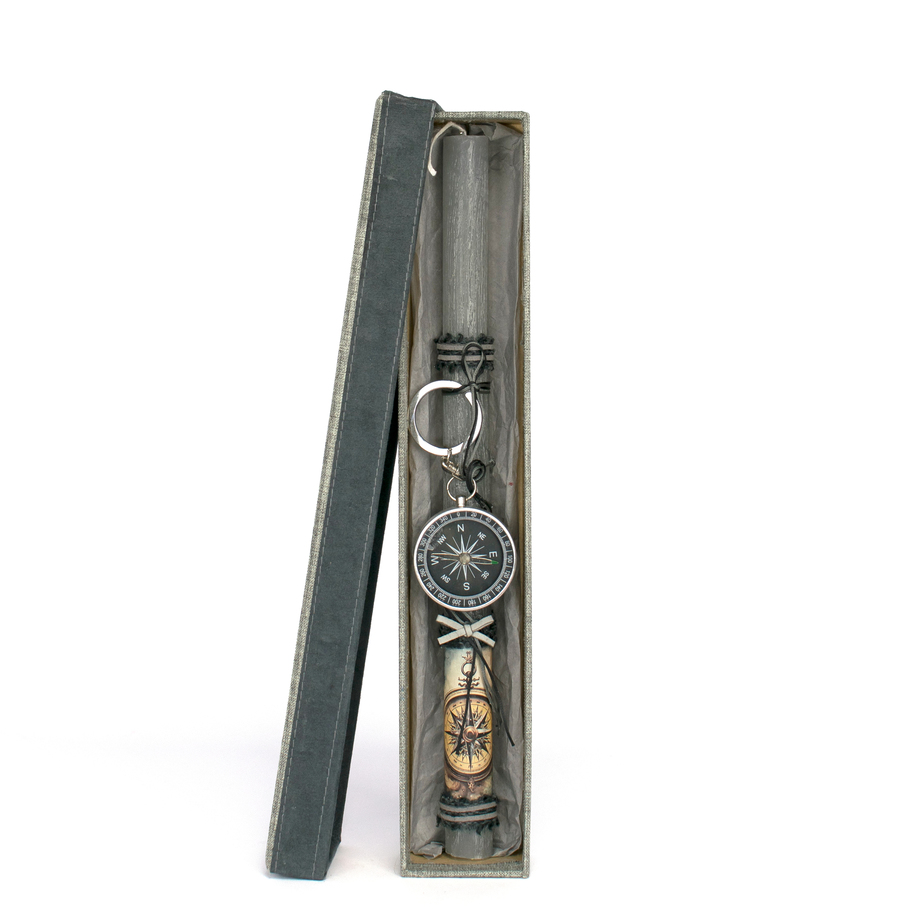 Γέραλης Χειροποίητη Λαμπάδα με Μπρελόκ Πυξίδα σε Υφασμάτινο Κουτί Γκρι κωδικός 24086G