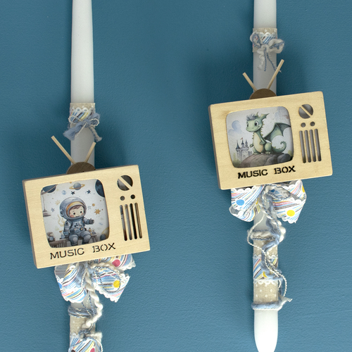 Γέραλης Χειροποίητη Λαμπάδα Μουσικό Κουτί Τηλεόραση "Αστροναύτης" 24214A