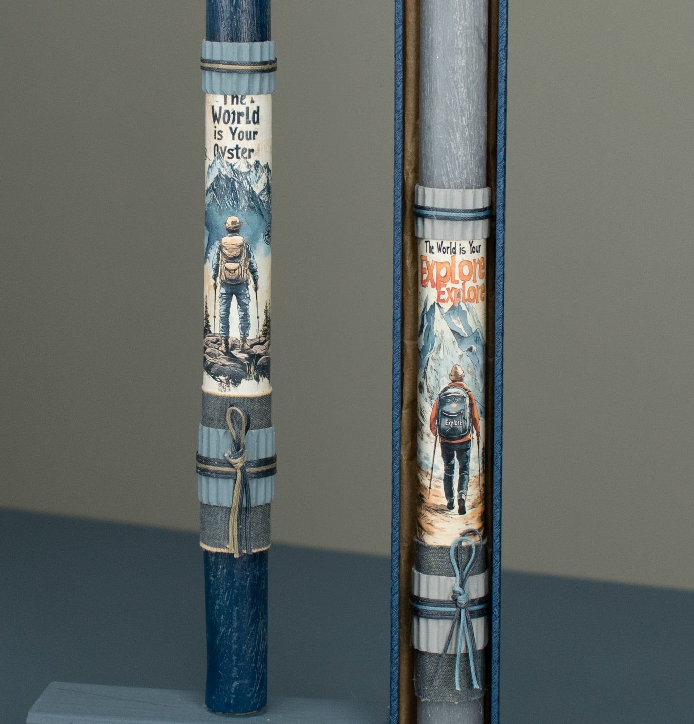 Γέραλης Χειροποίητη Λαμπάδα με Μοτίβο Ορειβάτης σε Κουτί (Χάρτινο) Γκρι κωδικός 25072G