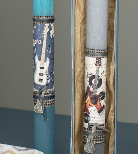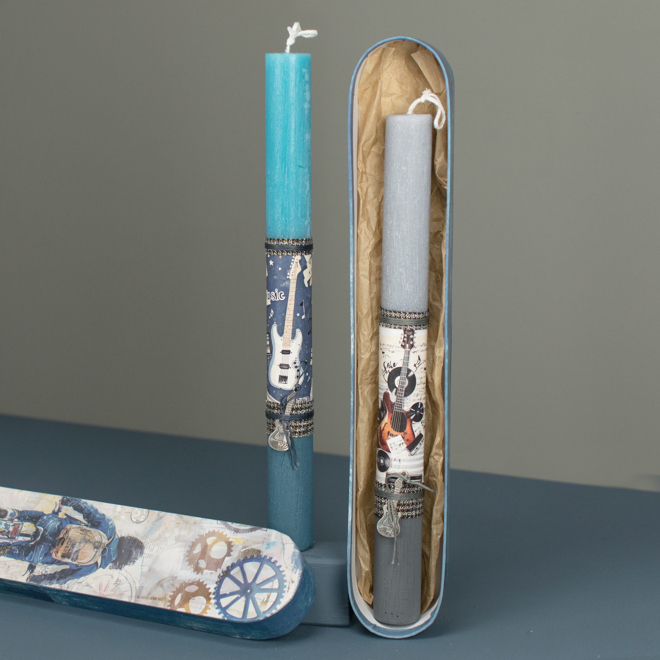 Γέραλης Χειροποίητη Λαμπάδα Χοντρή Στρόγγυλη με Μοτίβο Κιθάρα Γκρι σε Κουτί (Χάρτινο) κωδικός 25079G