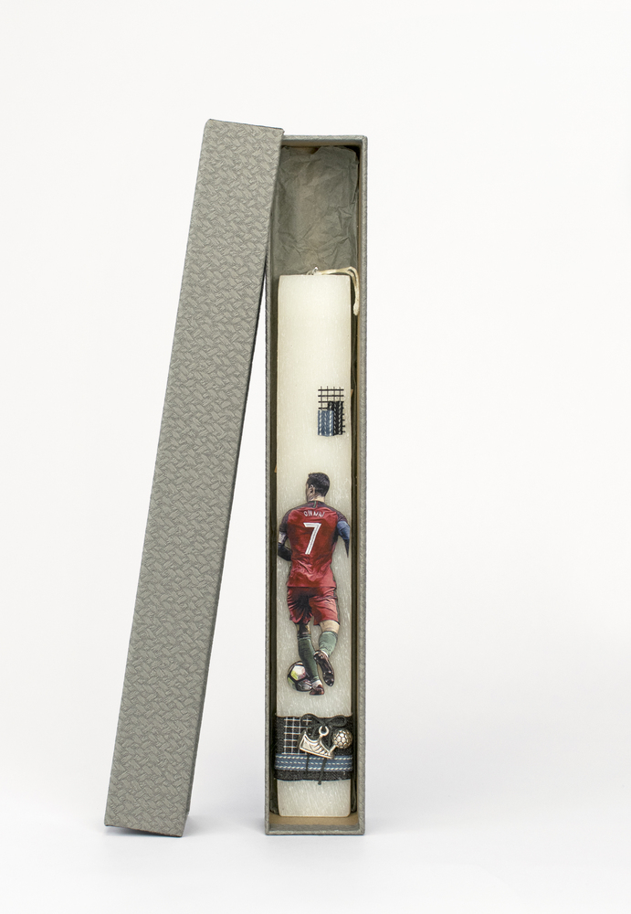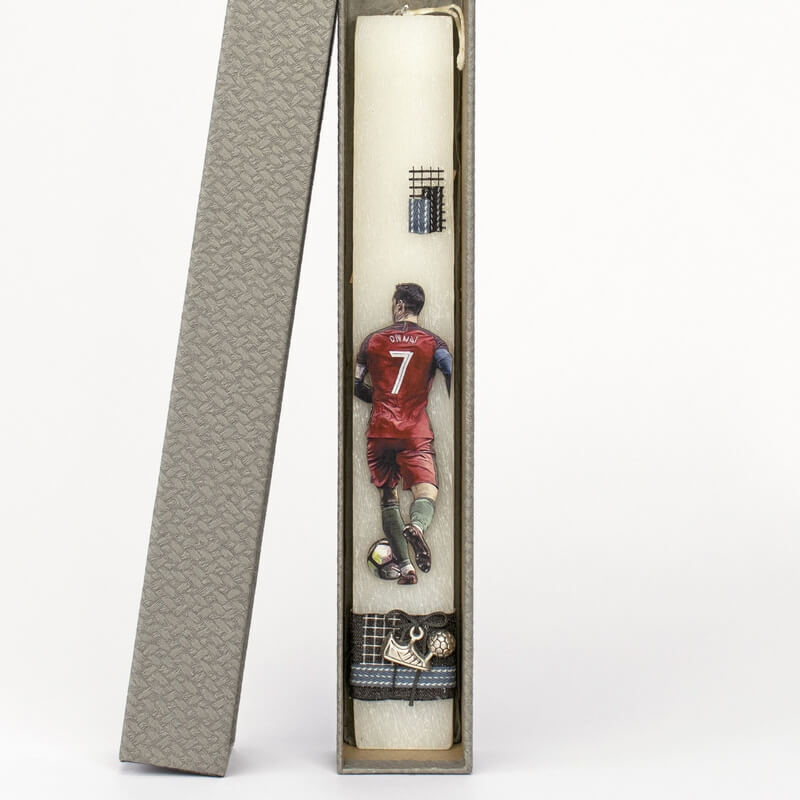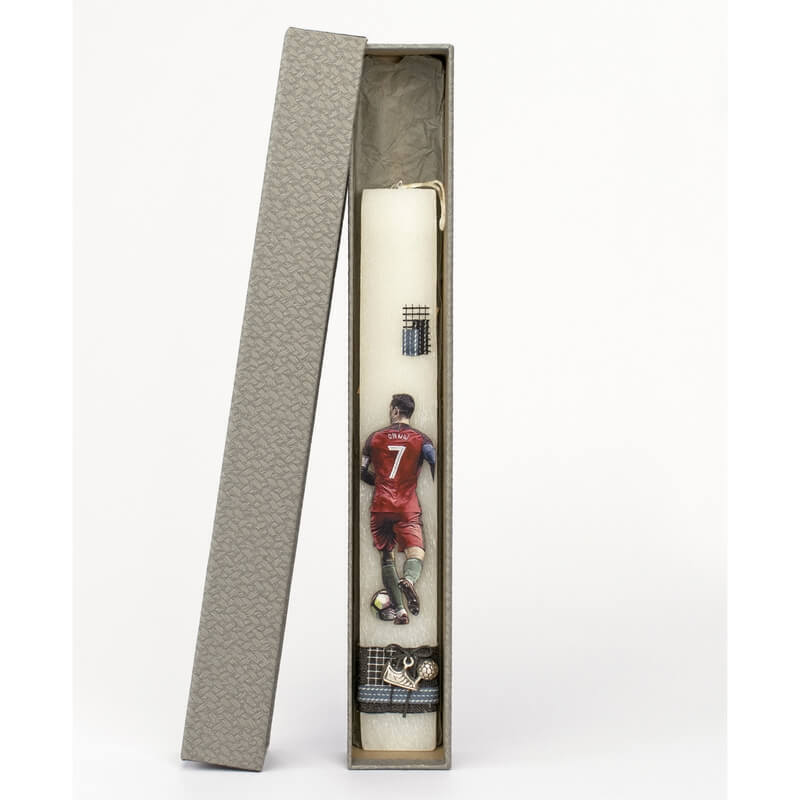 Γέραλης Χειροποίητη Λαμπάδα Πλακέ Ποδοσφαιριστής σε Κουτί (Χάρτινο) Λευκό κωδικός 26074W