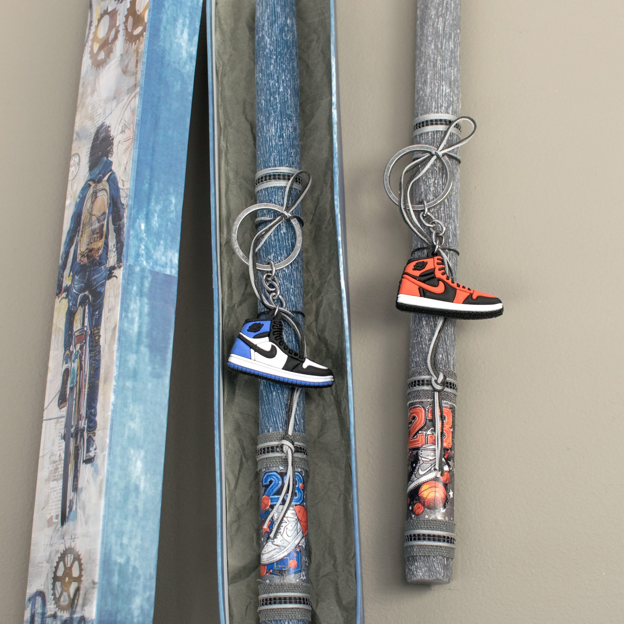 Γέραλης Χειροποίητη Λαμπάδα Στρόγγυλη με Μπρελόκ Παπούτσι Μπάσκετ σε Κουτί (Χάρτινο) Γκρι κωδικός 26090G