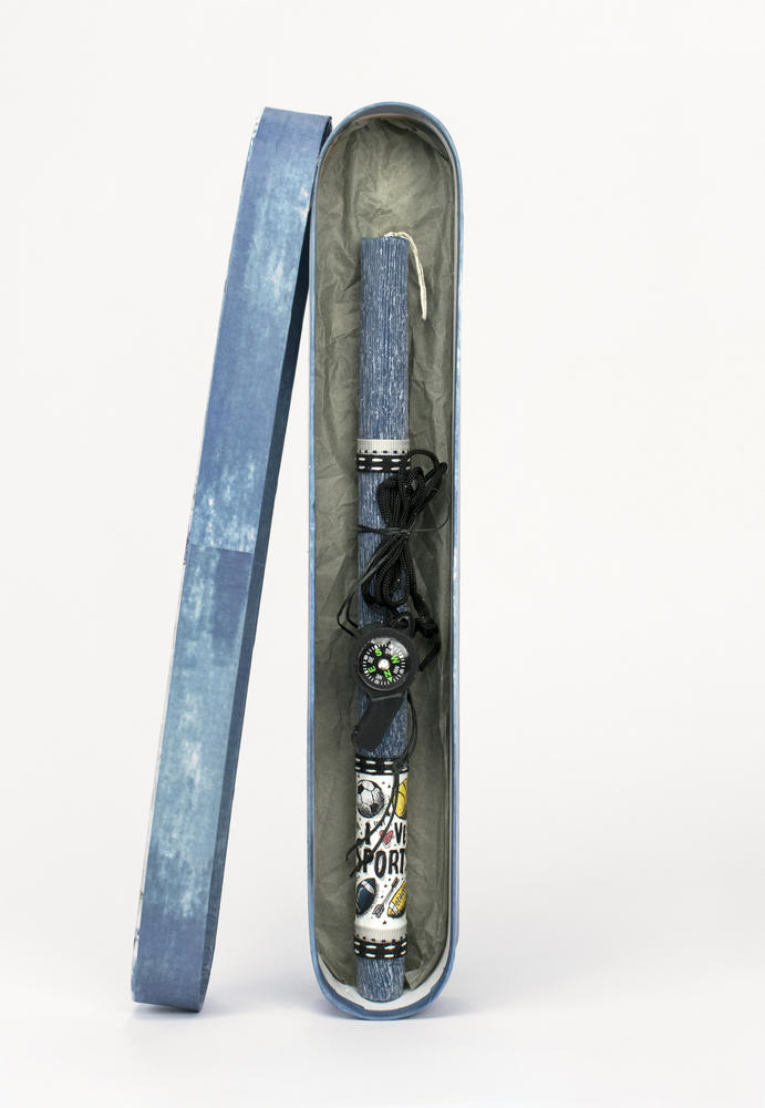 Γέραλης Χειροποίητη Λαμπάδα Στρόγγυλη με Αθλητική Σφυρίχτρα σε Κουτί (Χάρτινο) Μπλε κωδικός 26123B