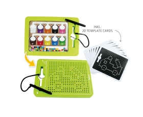 Η Μαγνητική Επιφάνεια συνδυάζει δύο δημιουργικά παιχνίδια σε έναν πρακτικό, διπλής όψης σχεδιασμό. Από τη μία πλευρά, τα παιδιά μπορούν να χρησιμοποιήσουν το ενσωματωμένο μαγνητικό στυλό για να κάνουν τις μαγνητικές μπίλιες ορατές και να δημιουργήσουν εντυπωσιακές εικόνες από σχήματα και μοτίβα. Αυτά τα μικρά έργα τέχνης σβήνονται αμέσως και οι μπίλιες «εξαφανίζονται» ξανά μέσα στην επιφάνεια.