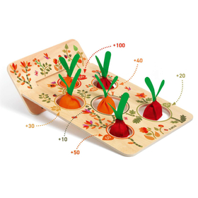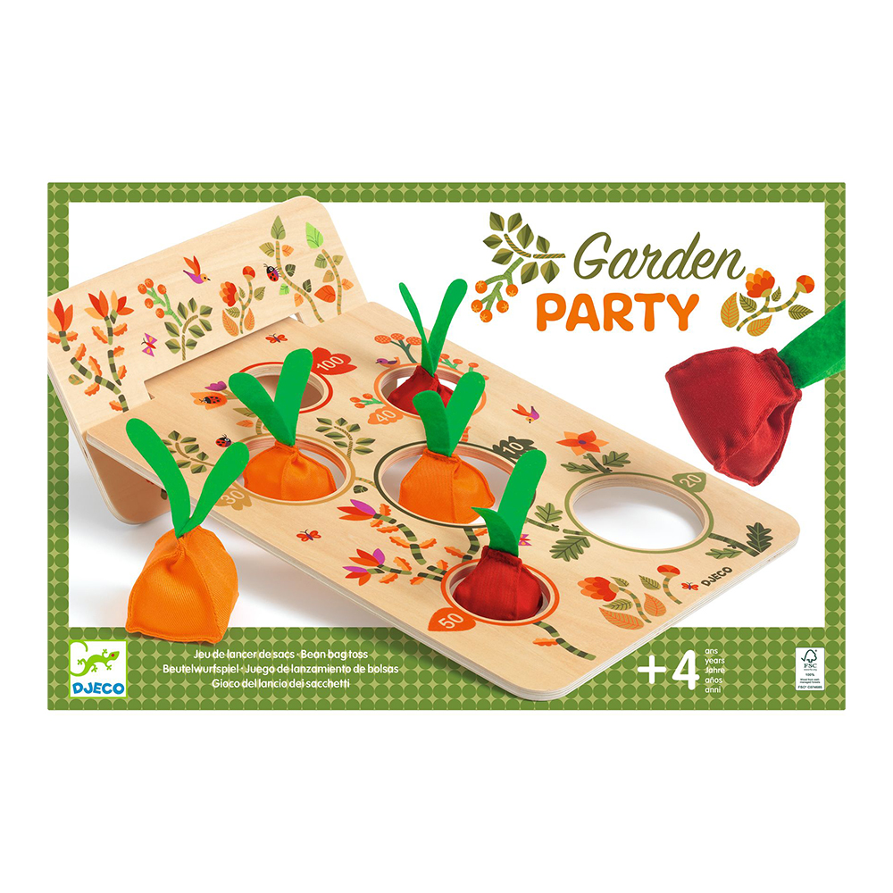 Εξασκηθείτε στο σημάδι με τον πιο διασκεδαστικό τρόπο με το παιχνίδι στόχου της εταιρείας Djeco. Ποιος θα καταφέρει να ρίξει τα καρότα μέσα στις τρύπες του κήπου; Οι μικρότερες τρύπες κερδίζουν περισσότερους πόντους και όποιος παίκτης συλλέξει τους περισσότερους, θα είναι τελικά ο νικητής! Ένα κλασικό παιχνίδι δράσης που διασκεδάζει και προκαλεί τα παιδιά σε εξαιρετικές επιδόσεις! Όσο μεγαλύτερη είναι η απόσταση της καθορισμένης περιοχής ρίψης, τόσο υψηλότερο είναι το επίπεδο δυσκολίας. Το παιχνίδι αναπτύσσει φαντασία και δημιουργικότητα, κοινωνικές δεξιότητες, αδρή & λεπτή κινητικότητα και δεξιότητες χειρισμού. Η συσκευασία περιέχει 1 ξύλινο στόχο που αποτελείται από 3 ξύλινα μέρη, 6 μαξιλαράκια - καρότα και μία μεγάλη βαμβακερή θήκη αποθήκευσης για εύκολη μεταφορά.