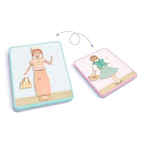 Ένα πρωτότυπο παιχνίδι ντυσίματος της εταιρείας Djeco με ξύλινους μαγνήτες σε μεταλλικό κουτί δύο όψεων.