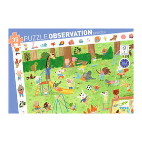 Σε ποιο σημείο του κήπου παίζει ο κροκόδειλος με την αλεπού; Στην τσουλήθρα, στην κούνια ή στην αμμοδόχο; Συνθέστε το παζλ, για να το ανακαλύψετε! Παζλ της εταιρείας Djeco που περιλαμβάνει 35 κομμάτια υψηλής ποιότητας, κατασκευασμένα από ανθεκτικό πεπιεσμένο χαρτόνι, καθώς και μια αφίσα με την εικόνα του παζλ. Τα παιδιά καλούνται να κατασκευάσουν το παζλ και στη συνέχεια να παρατηρήσουν τα αντικείμενα που υπάρχουν περιμετρικά στην εικόνα, έτσι ώστε να τα εντοπίσουν μέσα στο παζλ. Μια εκπαιδευτική δραστηριότητα που καλλιεργεί τη συγκέντρωση, την υπομονή και την παρατηρητικότητα των παιδιών και αναπτύσσει τον συντονισμό χεριού – ματιού τους.