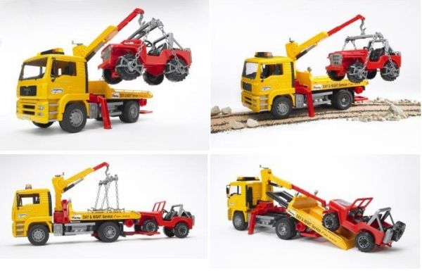 - Καμπίνα του οδηγού μπορεί να γέρνει- Καπό της μηχανής μπορεί να ανοίξει.Αυτοκίνητο Body:- Πλατφόρμα φόρτωσης μπορεί να αφαιρεθεί- Whell-μακριά και περιστρεφόμενο γερανό ανύψωσης- Inc. ανύψωση τροχού και διακίνησης φορτίων εργαλεία (που αποτελείται από κομμάτια και σφιγκτήρες τροχών)- Τάκους και αντιστήριξη φορές-out σασί:- Ελαστικά πέλματος inkl. Σταυρός του οχήματος της χώρας, Art.-Nr. 02540- Παρμπρίζ πέφτει- Καπό της μηχανής μπορεί να ανοίξει- Διεύθυνσης πείροκοινός:- ΠΡΟΕΙΔΟΠΟΊΗΣΗ! Δεν είναι κατάλληλο για παιδιά κάτω των 36 μηνών. Κίνδυνος πνιγμού - μικρά κομμάτια.- Συνιστάται ηλικία: κατάλληλο από τις 4 ετών και πάνω για να παίζουν εσωτερικούς και εξωτερικούς χώρους- Ελήφθη Gut Βραβείο Spiel? Για περισσότερες πληροφορίες, επισκεφθείτε spielgut.org Κατασκευασμένα από υψηλής ποιότητας πλαστικό όπως το ABS- Made in Germany- Κλίμακα 1:16