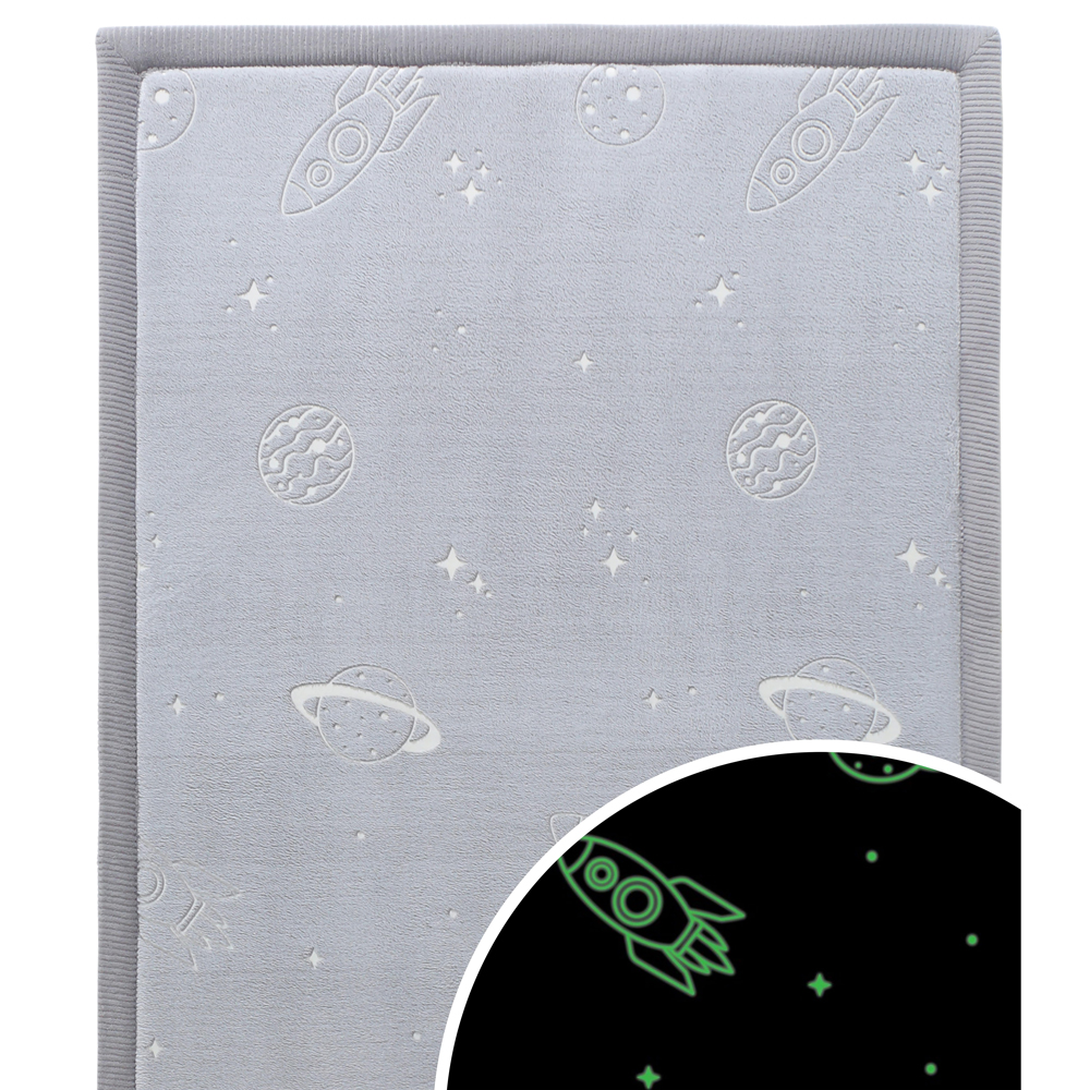 - Το μεγάλο μέγεθος 170x120x2.5 εκ. καλύπτει αποτελεσματικά το κρύο πάτωμα, ενώ ο φωτεινός σχεδιασμός του δημιουργεί μια ζεστή, ονειρική ατμόσφαιρα όταν σβήνουν τα φώτα. Για καλύτερο φωσφορισμό, αρκεί έκθεση σε έντονο φως για 30–60 λεπτά.