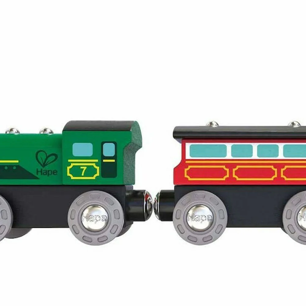 Hape Railway Ξύλινο Τρενάκι Stream-Era (E3719A).Είναι πρωί και ώρα για να φτάσουμε όλοι στη δουλειά! Σπρώξτε την ατμομηχανή σας και τα φωτεινά κόκκινα βαγόνια για να βεβαιωθείτε ότι όλοι φτάνουν στο γραφείο εγκαίρως.
