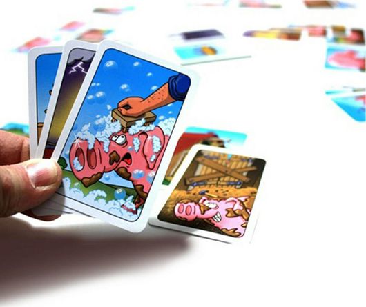 Και οι πονηροί χοιροτρόφοι θα φροντίσουν να καρφώσουν την πόρτα του χοιροστασίου τους, πριν μπουν οι άλλοι παίκτες μέσα για να τους καθαρίσουν τα γουρούνια…Ένα επιτραπέζιο παιχνίδι για 2-4 Ενήλικες και παιδιά 7 ετών και άνω. Μέση διάρκεια παιχνιδιού: 10'.