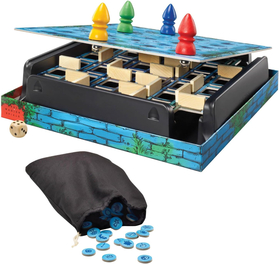 Περιεχόμενα: Ένα ταμπλό (κουτί του παιχνιδιού), 24 ξύλινα κομμάτια τοίχου, 24 μάρκες, 1 σακούλι, 1 ζάρι, 4 μεταλλικές μπάλες, 4 πιόνια, Κανόνες