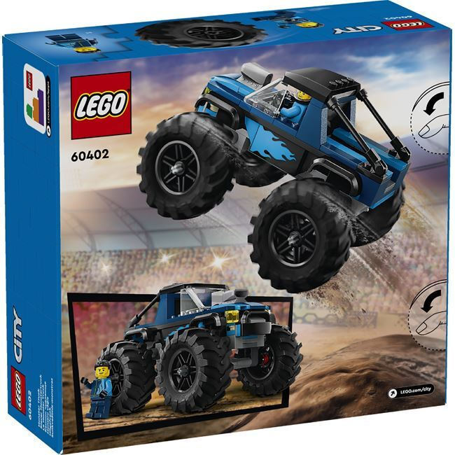 LEGO City Blue Monster Truck (60402). Ζήσε τη συγκίνηση της οδήγησης με το LEGO® City Blue Monster Truck! Αυτό το πανίσχυρο όχημα είναι κατασκευασμένο για ανώμαλα εδάφη και δράση σε υψηλή ταχύτητα, με τεράστια ελαστικά για υψηλή πρόσφυση στις στροφές και πανύψηλα άλματα. Μπες πίσω από το τιμόνι και πήγαινε στο πλησιέστερο στάδιο για επικές επιδείξεις οδήγησης που θα κάνουν το πλήθος να ζητωκραυγάζει!