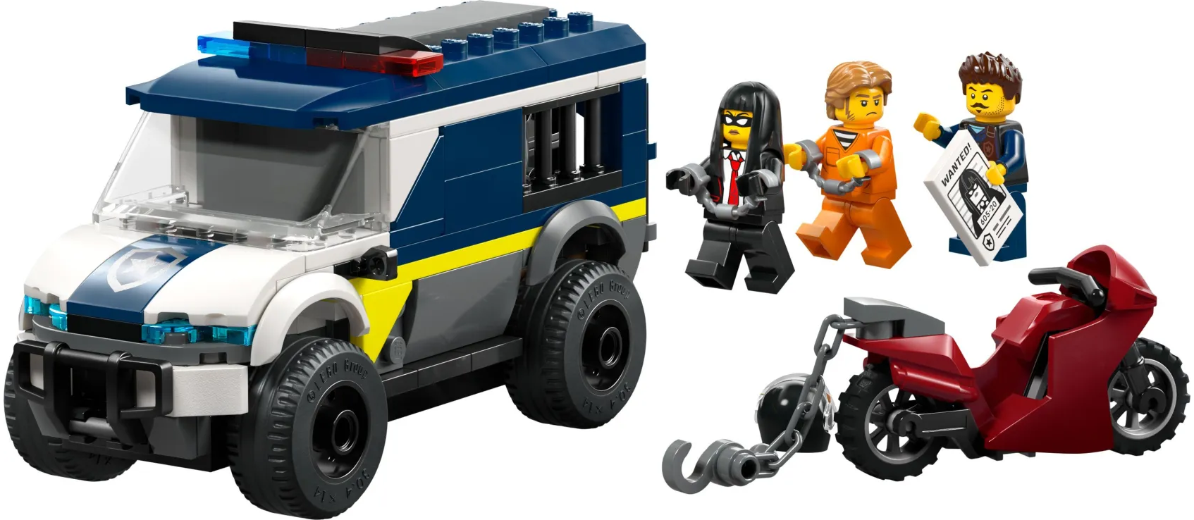 Ετοιμαστείτε για συναρπαστικές περιπέτειες απόδρασης με το σετ κατασκευής LEGO City Police Prisoner Transport Van (60479) για παιδιά ηλικίας 6 ετών και άνω. Το μοντέλο αστυνομικού φορτηγού διαθέτει λεπτομερή καμπίνα οδηγού και κελί φυλακής με χώρο για 2 κακοποιούς. Τα παιδιά χρησιμοποιούν τη μοτοσικλέτα με την αλυσίδα και τον γάντζο για βγάλουν την πόρτα του κελιού. Απλώς προσθέστε τις μίνι φιγούρες αστυνομικού και 2 κακοποιών για επικό παιχνίδι ρόλων με αποδράσεις από τη φυλακή.