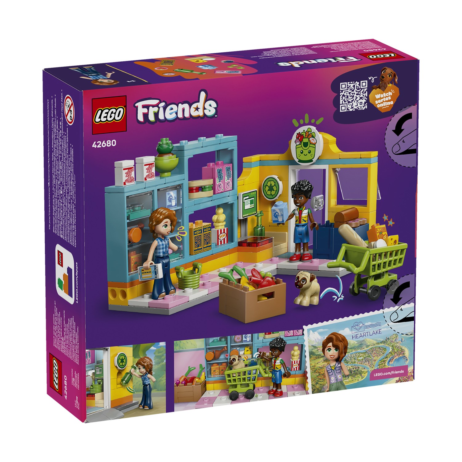 Εμπνεύστε παιχνίδι με θέμα τα ψώνια σε παντοπωλείο με το σετ παιχνιδιού LEGO Friends Heartlake City Convenience Store (42680). Κορίτσια και αγόρια ηλικίας 5 ετών και άνω δημιουργούν τις δικές τους διασκεδαστικές ιστορίες με αυτό το λεπτομερές σετ καταστήματος για παιδιά. Διαθέτει ρεαλιστικά χαρακτηριστικά όπως ράφια με λαχανικά, καρότσι αγορών, καλάθι, σημείο ανακύκλωσης και ταμειακή μηχανή. Αυτό το διασκεδαστικό παιχνίδι συνοδεύεται από μίνι κούκλες Autumn και Zac, έναν σκύλο και άφθονα τρόφιμα για να αγοράσουν οι πελάτες. Ανακαλύψτε ψωμί, ντόνατς, χυμό, γάλα, κουτιά με νουντλ, τσίχλες, σάντουιτς, μήλο, μπανάνα, φράουλες, κεράσια, καρότα, ποπκόρν, ένα φυτό και πολλά άλλα. Αυτό το σετ είναι υπέροχο δώρο για κορίτσια και αγόρια που λατρεύουν τα παιχνίδια ρόλων με θέμα τα ψώνια. Με την εφαρμογή LEGO® Builder, τα παιδιά απολαμβάνουν μια απλή περιπέτεια κατασκευής όπου ζουμάρουν και περιστρέφουν σετ χρησιμοποιώντας 3D οδηγίες, αποθηκεύουν σετ και παρακολουθούν την πρόοδο. Το σετ περιέχει 176 τεμάχια.