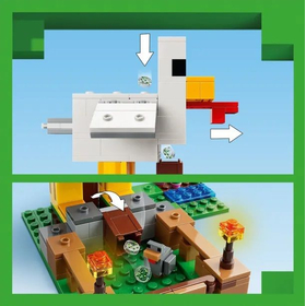 Φροντίστε κοτόπουλα και καλλιεργήστε σπαρτά με το παιχνίδι gamer LEGO Minecraft Chicken Farm (21585) για κορίτσια και αγόρια ηλικίας 7 ετών και άνω. Αυτό το παιδικό σετ κατασκευής gaming προκαλεί τους παίκτες να φροντίσουν ένα κοτόπουλο και ένα κοτοπουλάκι με μια μίνι φιγούρα Chicken Fan, ενώ αντιμετωπίζουν μια αλεπού (που της αρέσει να τρώει κοτόπουλο) και ένα μωρό zombie (που του αρέσει να καβαλάει κοτόπουλα). Το κοτέτσι έχει σχήμα κοτόπουλου με κινούμενα φτερά και αυλή στο μπροστινό μέρος με πύλη που ανοίγει. Το τεράστιο κοτόπουλο γεννάει αυγά στο πίσω μέρος και από το στόμα του ρίχνει φύτρα σε ένα δοχείο, που γέρνει προς τα εμπρός όταν τα κοτόπουλα χρειάζονται τροφή. Τα διασκεδαστικά αξεσουάρ περιλαμβάνουν πυρσούς, σανό, κλειστή ψησταριά, 2 αυγά, 2 σωρούς φύτρων, πόδι κοτόπουλου, φτερό και τσεκούρι. Είναι μια εξαιρετική ιδέα δώρου για παίκτες του Minecraft, LEGO κατασκευαστές και φαν των διακοσμητικών σετ με θέμα το gaming και συνοδεύεται από την εφαρμογή LEGO Builder, που επιτρέπει στα παιδιά να ζουμάρουν, να περιστρέφουν σε 3D και να παρακολουθούν την πρόοδο με απλές ψηφιακές οδηγίες. Το σετ περιέχει 233 τεμάχια.