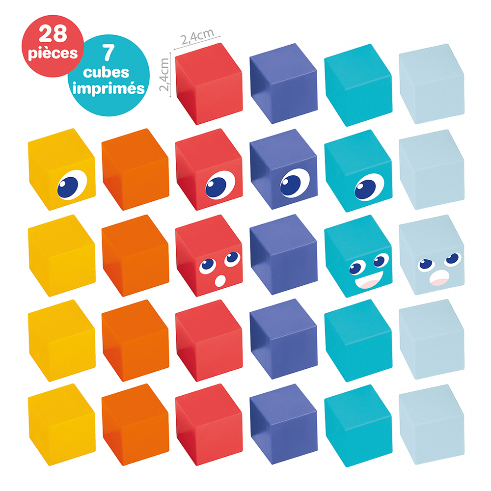 • Οι 28 κύβοι διαθέτουν εκφραστικά σχέδια με μάτια και χαρακτηριστικά, ενθαρρύνοντας τη φαντασία και την αφήγηση μέσα από το συμβολικό παιχνίδι.