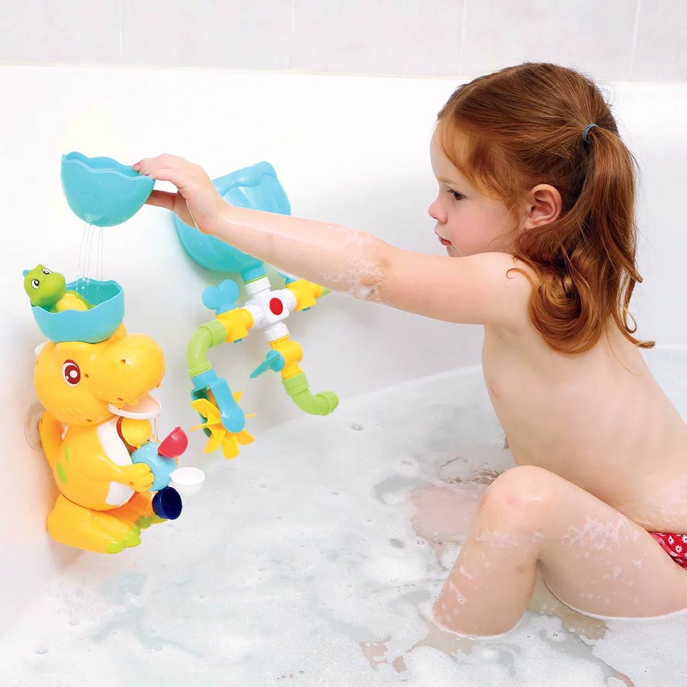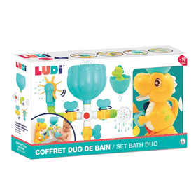 Πώς κρατάτε τα μικρά σας απασχολημένα την ώρα του μπάνιου; Με το σετ παιχνιδιών μπάνιου της εταιρείας Ludi! Η υδραυλική αυτή κατασκευή περιλαμβάνει ένα μεγάλο χαμογελαστό δεινόσαυρο, σωλήνες και χοάνες για να τα συνδυάσετε με πολλούς διαφορετικούς τρόπους και ένα μικρό δεινοσαυράκι που πιτσιλάει νερό. Γεμίστε το δοχείο του δεινοσαύρου με νερό και καθώς αυτό κυλάει, θα χαρίσει κίνηση στον τροχό του νερού! Πρόκειται για ένα παιχνίδι που συντροφεύει το παιδί καθώς μεγαλώνει! Το κύκλωμα περιλαμβάνει ένα ολόκληρο δίκτυο σωληνών με βάνες και πολλές άλλες δραστηριότητες για την εξε-ρεύνηση των φαινομένων του νερού. Όταν το παιδί ρίχνει το νερό στη δεξαμενή και ενεργοποιεί τις βάνες, ενεργοποιείται ολόκληρο το κύκλωμα! Οι βρυσούλες, οι νερόμυλοι, ο ψεκαστήρας και το κύπελο σας δίνουν την ευκαιρία να παίξετε με ποικίλους τρόπους. Στιβαρό και εύχρηστο, είναι εξοπλισμένο με πρακτικές βεντούζες για στερέωση στον τοίχο ή στην άκρη του μπάνιου. Ένα παιχνίδι που είναι σίγουρο ότι θα γοητεύσει τα μικρά παιδιά, διεγείροντας τόσο τη φαντασία τους όσο και την επιδεξιότητά τους. Επιπλέον αναπτύσσει τις κινητικές τους δεξιότητες και τη γνώση αιτίου – αποτελέσματος. Τέλος, τα διάφορα σχήματα και τα έντονα χρώματα παίζουν και διδάσκουν, διεγείροντας την ψυχοκινητική ανάπτυξη του παιδιού.