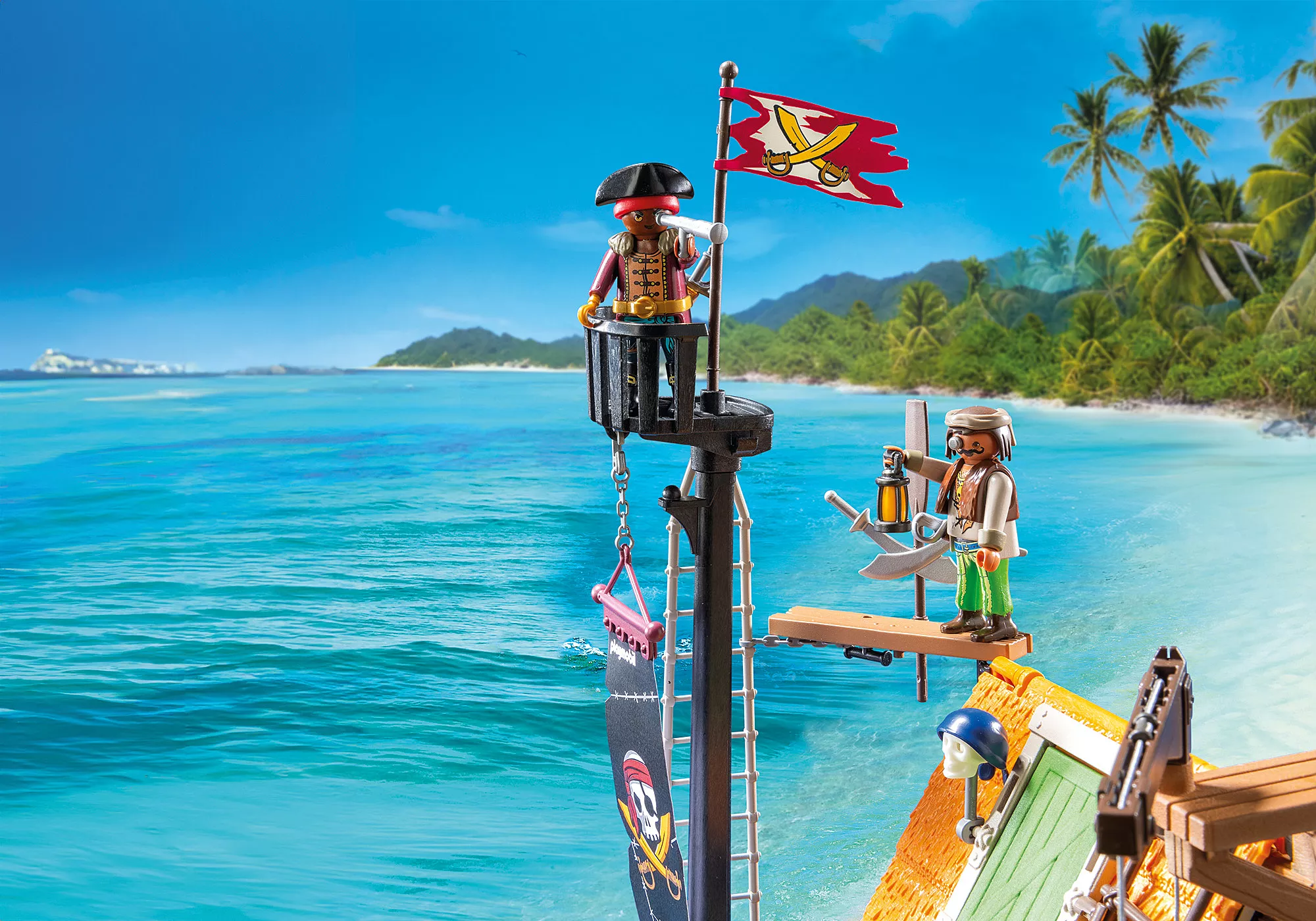 Γεμάτο με τολμηρές δυνατότητες και περίπλοκες λεπτομέρειες, αυτό το σετ PLAYMOBIL μετατρέπει οποιοδήποτε δωμάτιο παιχνιδιού σε μια περιπέτεια στον ανοιχτό ωκεανό, ιδανικό για φανταστικούς νεαρούς πειρατές!