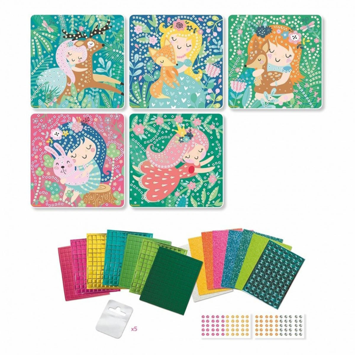 Με το κιτ "Πριγκίπισσες του Δάσους", το παιδί σας μπορεί να δημιουργήσει 5 τέλειους πίνακες με όμορφες πριγκίπισσες. Ακολουθήστε τις οδηγίες και κολλήστε κύκλους ή τετράγωνα από πολύχρωμα ψηφιδωτά πλακάκια πάνω στην εικόνα και, στη συνέχεια, προσθέστε στρας για να προσθέσετε λάμψη. Ιδού! Ένας όμορφος τρισδιάστατος πίνακας είναι έτοιμος! Και πώς λάμπει! Τώρα στερεώστε ένα γάντζο στο πίσω μέρος και κρεμάστε το έργο σας όπου θέλετε.