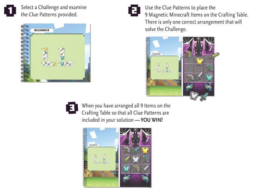 2. Ακολούθησε τη διάταξη των Στοιχείων για να τοποθετήσεις τα 9 Αντικείμενα Magnetic Minecraft στην Μαγνητική Επιφάνεια. Υπάρχει μόνο μία σωστή διάταξη που λύνει την Πρόκληση.
